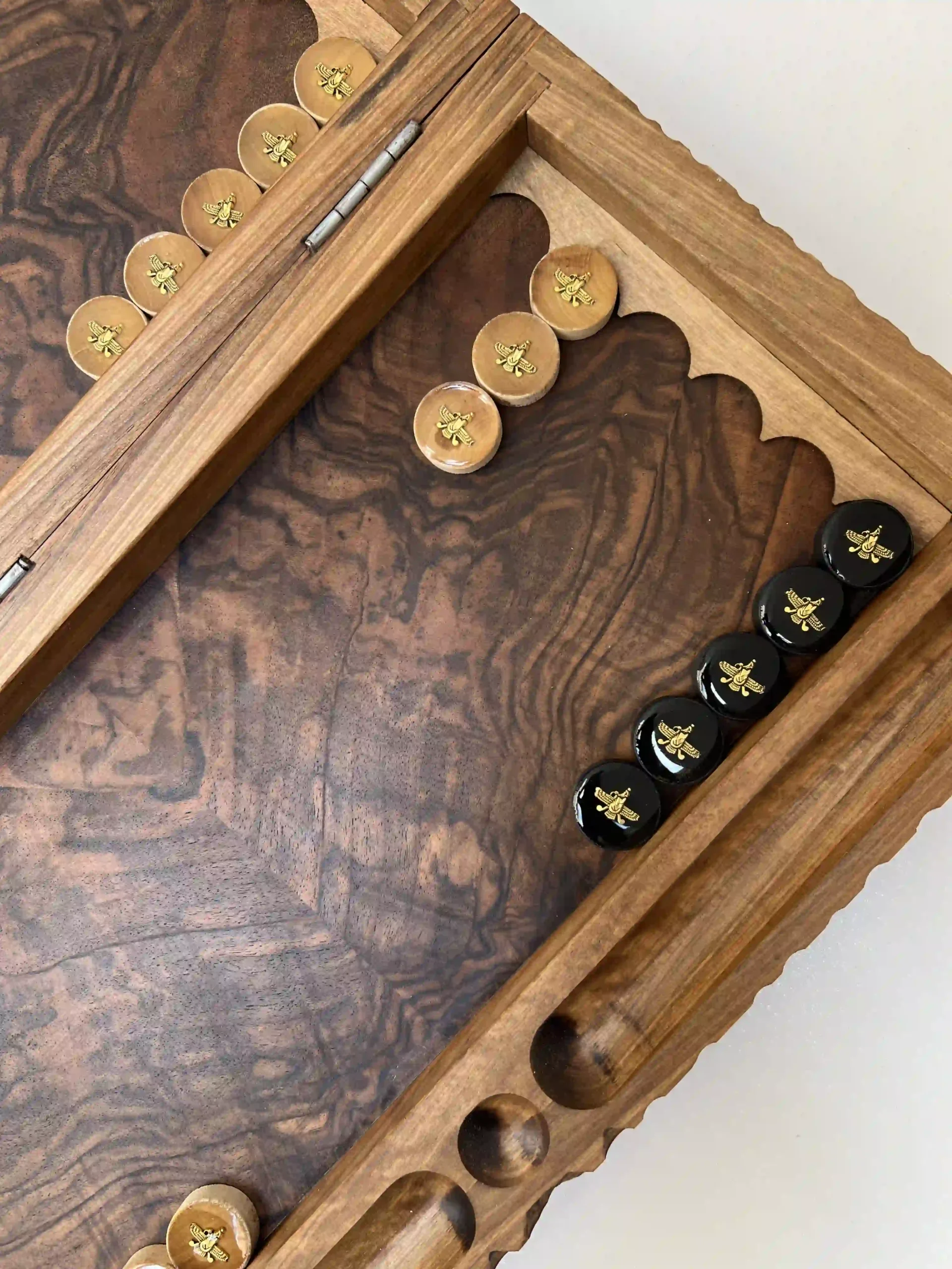 در قسمت تابلو از روغن هارد واکس امل استفاده شده که باعث جلوگیری از خط و خش میشود و همچنین طول عمر بیشتری به تخته نرد میدهد
